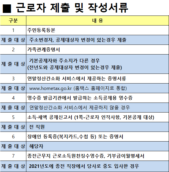 <<2021년 연말정산 관련 자료>>