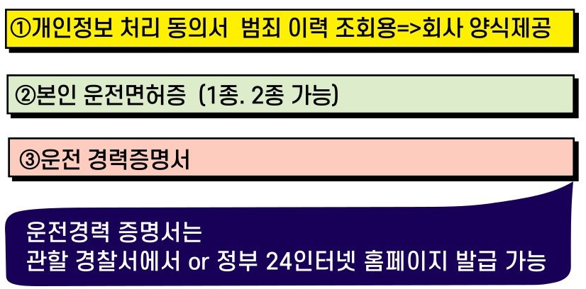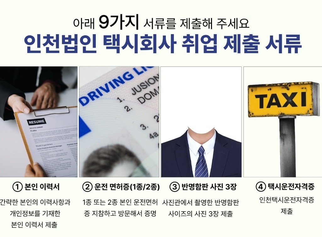 - 인천택시자격증 취득 후 인천택시회사에 입사할 경우 제출 서류